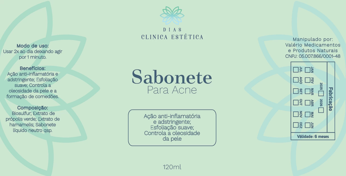 Rótulo para Sabonete para acne em BOPP Metalizado e medidas 133x70mm (base x altura).